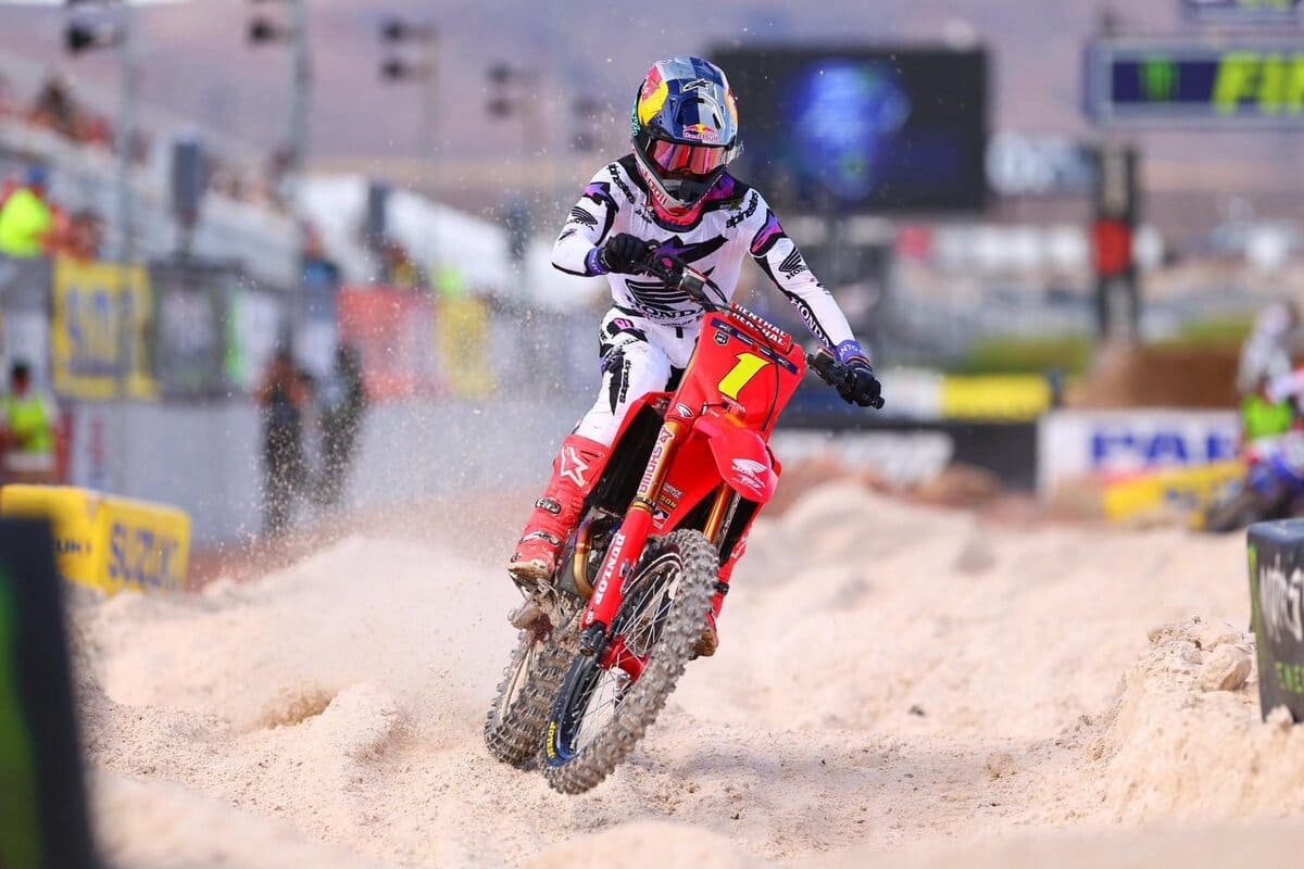 ศึก AMA SMX 2025 หรือที่หลายคนเรียกกันว่า SuperMotocross World Championship ถือเป็นเวทีใหญ่ที่สุดของโลกสายสองล้อทางฝุ่น เพราะเป็นการรวมเอาความมันส์จาก AMA Supercross และ AMA Motocross เข้ามาไว้ด้วยกัน ผ่านระบบเพลย์ออฟสุดเข้มข้น ก่อนจะไปจบลงที่รอบไฟนอล ซึ่งปีนี้สนามปิดฤดูกาลจัดขึ้นที่ The Strip at Las Vegas Motor Speedway และบอกเลยว่ามันคือค่ำคืนของค่ายปีกนก “ฮอนด้า” ที่สร้างประวัติศาสตร์ครั้งใหญ่ด้วยการเหมาแชมป์ทั้งสองรุ่น