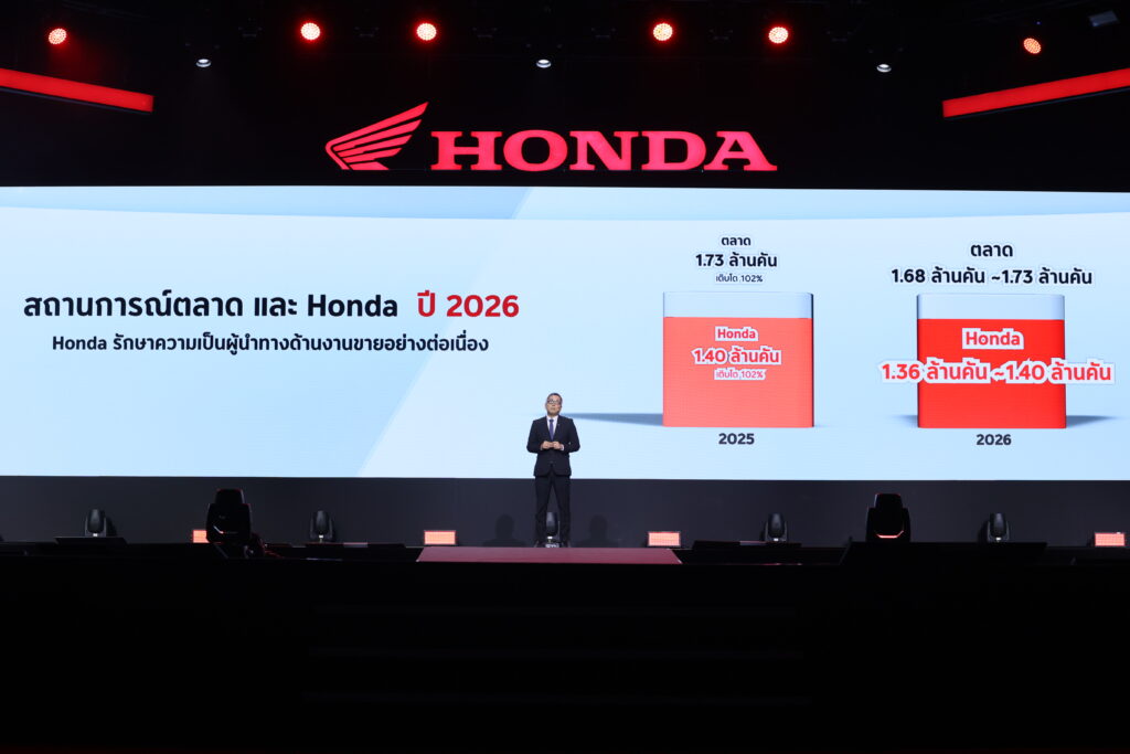 สำหรับปี 2026 การแข่งขันทางธุรกิจจะเข้มข้นขึ้น แต่เราก็พร้อมปรับกลยุทธ์ให้ทันต่อการเปลี่ยนแปลงอย่างแน่นอน ไทยฮอนด้าคาดการณ์ว่าตลาดรวมรถจักรยานยนต์อยู่ที่ 1.68 – 1.73 ล้านคัน และเราได้ตั้งเป้ายอดจำหน่ายไว้ที่ 1.36 – 1.40 ล้านคัน ฮอนด้าจะยังคงเดินหน้าสร้างสรรค์นวัตกรรมอย่างต่อเนื่อง เพื่อตอบโจทย์การใช้ชีวิตของคนไทยในทุกมิติ โดยมีแผนเปิดตัว รถจักรยานยนต์รุ่นใหม่รวมทั้งสิ้น 11 รุ่น ตลอดทั้งปี