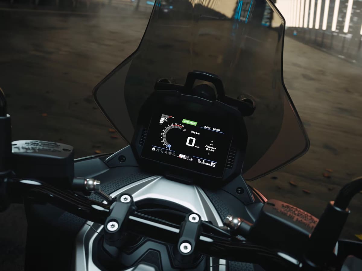 ในด้านระบบอิเล็กทรอนิกส์และความสะดวกสบาย ให้จอแสดงผลแบบสีชนิด TFT ขนาด 5 นิ้ว แสดงข้อมูลได้อย่างครบถ้วน พร้อมไฟหน้า LED 3 ดวงที่ให้ความสว่างชัดเจน สกู๊ตเตอร์รุ่นนี้มีสีให้เลือกถึง 4 แบบ คือ สีดำ Rugged Black, สีเทาอมน้ำตาล Boulder Grey, และสีเทา Dusty Grey และรุ่น Rally Replica สำหรับคนที่ชอบลวดลายจากรถแข่งในสนาม